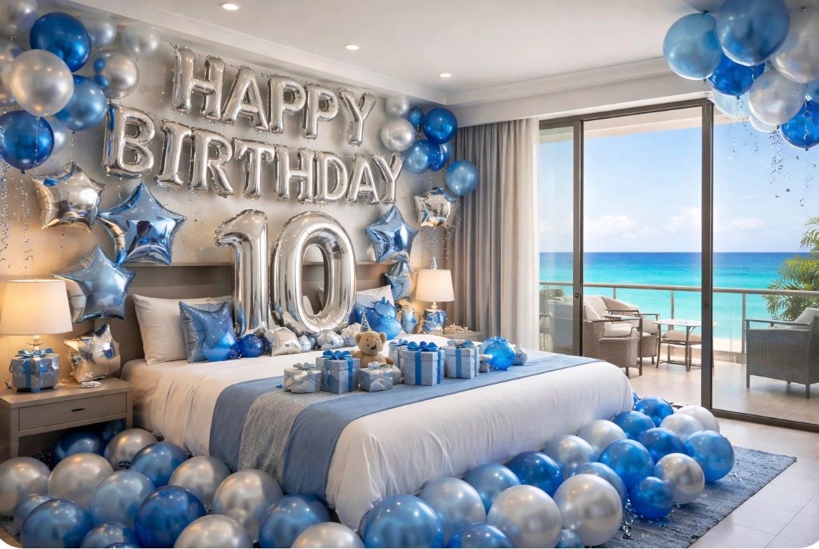 With Seaside Suite Styling, the process begins with your vision. Once you book, I connect with you to learn about your occasion, color preferences, theme ideas, and any custom details you’d like included. From there, I design a personalized styling plan tailored specifically to your celebration. On the day of your arrival, I come to your hotel room up to three hours before check-in to carefully transform the space using balloons, LED lighting, custom signage, rose petals, flameless candles, and specialty décor. Every element is thoughtfully placed to create a breathtaking reveal when you walk in. After your celebration, I also offer next-day cleanup so you can simply enjoy the moment while I handle the rest.